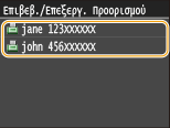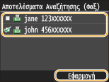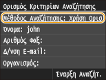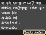 Η παρακάτω οθόνη απεικονίζει ένα παράδειγμα όπου έχει επιλεγεί η ρύθμιση <Όνομα> στο βήμα 4, για αναζήτηση με βάση το προσωπικό όνομα.