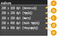 Μπορείτε να επιλέξετε την ανάλυση που είναι κατάλληλη για τον τύπο του εγγράφου. Όσο υψηλότερη είναι η ανάλυση, τόσο πιο ευκρινής είναι η εικόνα, αλλά τόσο περισσότερο διαρκεί η αποστολή της.