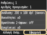 Αφού ανακαλέσετε το συνδυασμό ρυθμίσεων που θέλετε, μπορείτε να αλλάξετε και τις ρυθμίσεις φαξ εάν είναι απαραίτητο.
