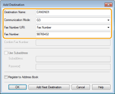 Εάν έχετε επιλέξει [Confirm Fax Number/URI when Setting Destination] (Επιβεβαίωση αριθμού φαξ/URI κατά τον ορισμό προορισμού) στο πλαίσιο διαλόγου που εμφανίζεται όταν επιλέγετε [Security Settings] (Ρυθμίσεις ασφάλειας) στην καρτέλα [Special] (Ειδικές), εισαγάγετε έναν αριθμό στο πεδίο [Confirm Fax Number] (Επιβεβαίωση αριθμού φαξ) ή [Confirm URI] (Επιβεβαίωση URI). Για περισσότερες πληροφορίες, επιλέξτε [Help] (Βοήθεια) στην οθόνη του προγράμματος οδήγησης φαξ.