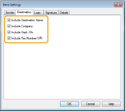 Επιλέξτε τα στοιχεία προορισμού που θέλετε να συμπεριλάβετε και εισαγάγετε τις πληροφορίες. Στο συνοδευτικό φύλλο συμπεριλαμβάνονται τα ονόματα προορισμών, τα ονόματα εταιρειών, τα ονόματα τμημάτων και οι αριθμοί φαξ που έχουν καθοριστεί στην καρτέλα [Select Destination] (Επιλογή προορισμού)/[Enter Destination] (Εισαγωγή προορισμού) (