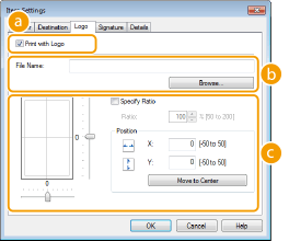Καθορίστε κάθε ρύθμιση. Η παρακάτω οθόνη απεικονίζει ένα παράδειγμα όπου έχει επιλεγεί η καρτέλα [Logo] (Λογότυπο).