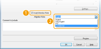 Υπάρχουν διαθέσιμες σημειώσεις προσοχής, όπως σημειώσεις «επείγοντος» και «εμπιστευτικού» μηνύματος. Μπορείτε επίσης να εισαγάγετε χαρακτήρες απευθείας στο πλαίσιο [Attention Note] (Σημείωση προσοχής) αντί να επιλέξετε μία σημείωση από τη λίστα.