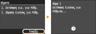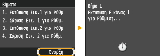 Αυτή η ρύθμιση βελτιώνει το αποτέλεσμα των αντιγράφων και εκτυπώσεων από συσκευή μνήμης USB. Για τη διόρθωση αντιγράφων εικόνων, μια εικόνα προσαρμογής θα εκτυπωθεί και θα σαρωθεί. Λάβετε υπόψη σας ότι δεν μπορείτε να προβείτε σε αυτή την ρύθμιση, ενώ πραγματοποιείτε ορισμένες λειτουργίες, όπως η σάρωση και η εκτύπωση.