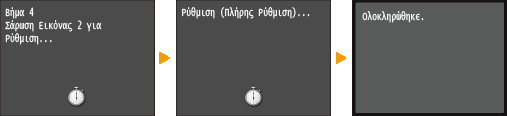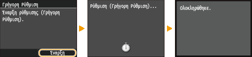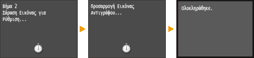 Η ρύθμιση αυτή διατηρεί τη βελτιστοποιημένη κατάσταση που λήφθηκε από τη ρύθμιση <Πλήρης Ρύθμιση>. Λάβετε υπόψη σας ότι δεν μπορείτε να προβείτε σε αυτή την ρύθμιση, ενώ πραγματοποιείτε ορισμένες λειτουργίες, όπως η σάρωση και η εκτύπωση. Εάν το αποτέλεσμα της ρύθμισης δεν είναι ικανοποιητικό, εκτελέστε τη ρύθμιση <Πλήρης Ρύθμιση>. Αυτή η ρύθμιση μπορεί να πραγματοποιηθεί αυτόματα μετά την αντικατάσταση μιας κασέτας γραφίτη.