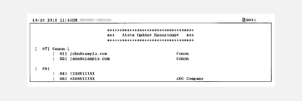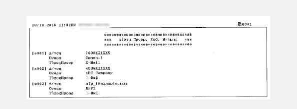 Μπορείτε να ελέγξετε τις λίστες διευθύνσεων που είναι καταχωρισμένες στο βιβλίο διευθύνσεων ως <Κωδικός Μνήμης>, <Αγαπημένα> και <Ομαδική Κλήση> εκτυπώνοντας μια λίστα βιβλίου διευθύνσεων.