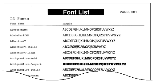 Μπορείτε να εκτυπώσετε μια λίστα για να ελέγξετε τις γραμματοσειρές που είναι διαθέσιμες στη λειτουργία PS.