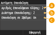 Καθορίστε τις ρυθμίσεις της αυτόματης επανάκλησης, μια λειτουργία που επανακαλεί αυτόματα τον αριθμό φαξ μετά από μερικά λεπτά, όταν η πρώτη προσπάθεια κλήσης αποτύχει επειδή η γραμμή ήταν κατειλημμένη. Μπορείτε να καθορίσετε πόσες φορές θα γίνει επανάκληση καθώς και το διάστημα που θα μεσολαβήσει μεταξύ των επανακλήσεων.