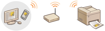 Για να εκτυπώσετε ή να σαρώσετε από φορητή συσκευή, μπορείτε να χρησιμοποιήσετε την πρακτική εφαρμογή Canon Mobile Application. Εάν η φορητή συσκευή σας είναι συμβατή με την τεχνολογία επικοινωνίας κοντινού πεδίου (NFC), μπορείτε να εκτυπώσετε απλά ακουμπώντας την πάνω στη συσκευή. Επίσης, μπορείτε να συνδεθείτε με τη συσκευή χωρίς δρομολογητή ασύρματου LAN και να χρησιμοποιήσετε το Remote UI (Απομακρυσμένο περιβάλλον εργασίας), το οποίο σας δίνει τη δυνατότητα να χειρίζεστε τη συσκευή και να αλλάζετε τις ρυθμίσεις της απομακρυσμένα.