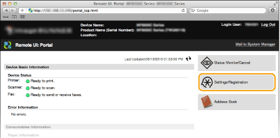 Εκκινήστε το Remote UI (Απομακρυσμένο περιβάλλον εργασίας) και συνδεθείτε σε λειτουργία υπεύθυνου συστήματος.