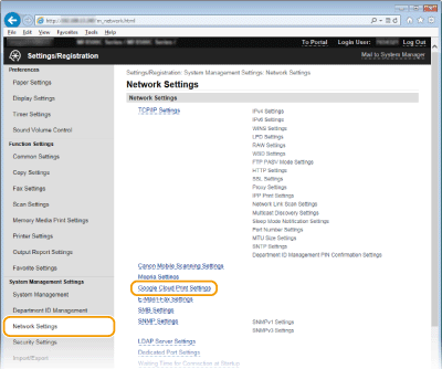 Επιλέξτε <Ρυθμίσεις Google Cloud Print>