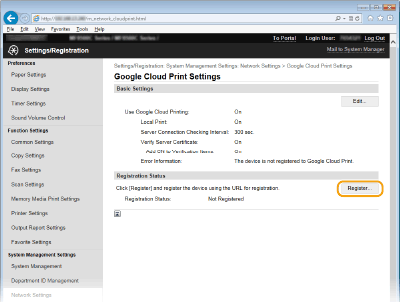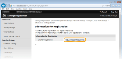 Κάντε κλικ στο σύνδεσμο της διεύθυνσης URL που εμφανίζεται στο [URL for Registration].