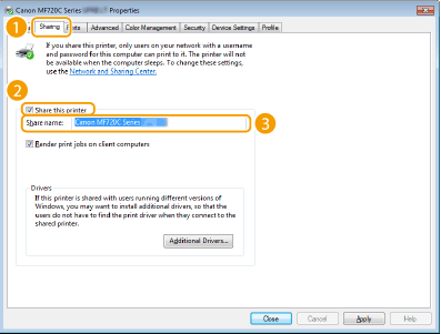Για διαχείριση των αναγνωριστικών τμημάτων κατά τη χρήση διακομιστή εκτύπωσηςΠρέπει να προστεθεί το Canon Driver Information Assist Service κατά την εγκατάσταση του προγράμματος οδήγησης εκτυπωτή. Για λεπτομέρειες, ανατρέξτε στο εγχειρίδιο MF Driver Installation Guide (Οδηγός εγκατάστασης προγράμματος οδήγησης MF).