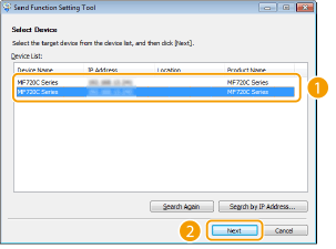 Επιλέξτε το μηχάνημα από το στοιχείο [Device List] (Λίστα συσκευών) και κάντε κλικ στο [Next] (Επόμενο).