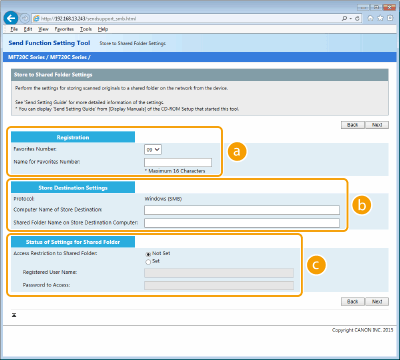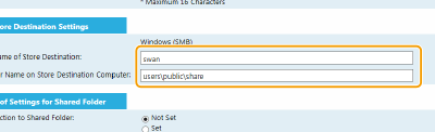 Κάντε κλικ στο κουμπί επιλογής [Not Set] (Δεν έχει οριστεί) ή [Set] (Έχει οριστεί) ανάλογα με τους περιορισμούς πρόσβασης που έχουν οριστεί στον κοινόχρηστο φάκελο. Εάν επιλέξετε [Set] (Έχει οριστεί), εισαγάγετε το όνομα χρήστη στο πλαίσιο κειμένου [Registered User Name] (Καταχωρημένο Όνομα Χρήστη) και το συνθηματικό στο πλαίσιο κειμένου [Password to Access] (Συνθηματικό για πρόσβαση).