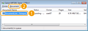 Ακύρωση από το Remote UI (Απομακρυσμένο περιβάλλον εργασίας)Μπορείτε να ακυρώσετε την εκτύπωση στη σελίδα [Job Status] του Remote UI (Απομακρυσμένο περιβάλλον εργασίας): Έλεγχος της τρέχουσας κατάστασης των εγγράφων εκτύπωσης