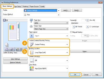 Εάν χρησιμοποιείτε το MF729Cx / MF728Cdw / MF724Cdw, μπορείτε να πραγματοποιήσετε εκτυπώσεις 1 όψης και 2 όψεων. Η προεπιλεγμένη ρύθμιση είναι [2-sided Printing] (Εκτύπωση 2 όψεων). Αλλάξτε τη ρύθμιση, όπως απαιτείται.