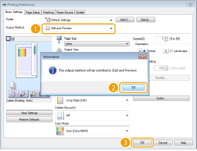 Επιλέξτε [Edit and Preview] (Επεξεργασία και Προεπισκόπηση) στη ρύθμιση [Output Method] (Μέθοδος εξόδου).
