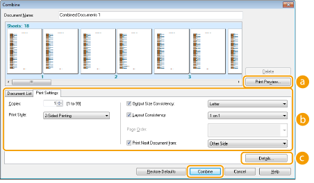 Αλλάξτε τις ρυθμίσεις, όπως απαιτείται, και κάντε κλικ στο [Combine] (Συνδυασμός).