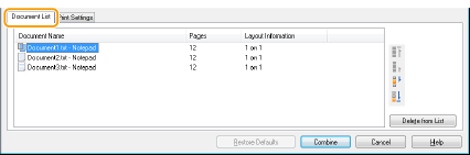 Κάντε κλικ στην καρτέλα [Document List] (Λίστα εγγράφων) για να εμφανίσετε τα έγγραφα που έχουν προστεθεί στα βήματα 1 έως 4. Μπορείτε να αφαιρέσετε έγγραφα επιλέγοντάς τα στη λίστα και κάνοντας κλικ στην επιλογή [Delete from List] (Διαγραφή από τη λίστα).