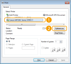 Επιλέξτε το κατάλληλο πρόγραμμα οδήγησης εκτυπωτή για τη συσκευή και έπειτα επιλέξτε [Preferences] (Προτιμήσεις) ή [Properties] (Ιδιότητες).