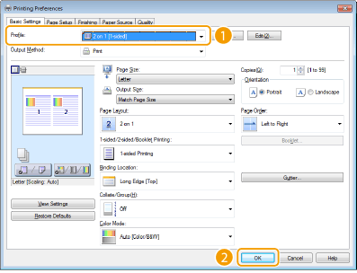 Είναι πολύ χρονοβόρο να καθορίζετε τους συνδυασμούς ρυθμίσεων, όπως «οριζόντιο προσανατολισμό 1-όψης σε χαρτί μεγέθους A4», κάθε φορά που εκτυπώνετε. Εάν καταχωρίσετε αυτούς τους συνδυασμούς ρυθμίσεων εκτύπωσης που χρησιμοποιούνται πιο συχνά ως «προφίλ», θα μπορείτε να καθορίζετε τις ρυθμίσεις εκτύπωσης επιλέγοντας ένα από αυτά τα προφίλ στη λίστα. Σε αυτή την ενότητα περιγράφεται ο τρόπος καταχώρισης των προφίλ και ο τρόπος εκτύπωσης χρησιμοποιώντας τα προφίλ.