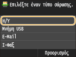 Άλλες χρήσιμες λειτουργίες σάρωσηςΜπορείτε να αποθηκεύσετε τα σαρωμένα έγγραφα σε μια συσκευή μνήμης USB ή να τα στείλετε ως συνημμένα σε μήνυμα e-mail ή ως I-Fax. Επίσης, μπορείτε να αποθηκεύσετε τα έγγραφα κοινόχρηστους φακέλους/διακομιστή FTP. Μπορείτε να πραγματοποιήσετε αυτές τις λειτουργίες απευθείας από τη συσκευή.