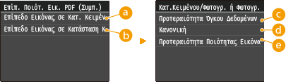 Ρυθμίσεις ποιότητας εικόνας για τις επιλογές <PDF (Συμπίεση)> και <PDF (Συμπίεση/OCR)>