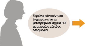 Επιλέξτε <PDF (Συμπίεση)> ως προεπιλεγμένη μορφή αρχείου και καταχωρίστε αυτή τη ρύθμιση ως προεπιλογή. Στο εξής, δεν θα χρειάζεται να αλλάζετε τη μορφή αρχείου κάθε φορά που πραγματοποιείτε σάρωση. Αλλαγή προεπιλεγμένων ρυθμίσεων