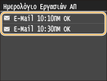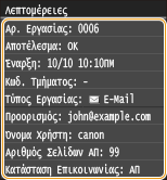 Όταν η επιλογή <Εμφάνιση Ημερολογίου Εργασιών> έχει οριστεί στη ρύθμιση <Off>, δεν μπορείτε να ελέγξετε τα αρχεία καταγραφής εργασιών για τα απεσταλμένα έγγραφα. Εμφάνιση Ημερολογίου Εργασιών