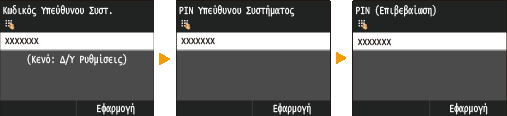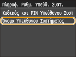 ![]() Στο μοντέλο MF729Cx, από προεπιλογή, ο κωδικός υπεύθυνου συστήματος και ο κωδικός τιμής έχουν την ίδια τιμή: 7654321. Συνιστάται να αλλάξετε αυτή τη ρύθμιση για μεγαλύτερη ασφάλεια.