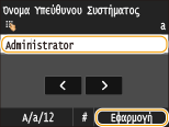 Εισαγάγετε έως 32 χαρακτήρες για το όνομα διαχειριστή συστήματος και πατήστε <Εφαρμογή>. Εισαγωγή κειμένου