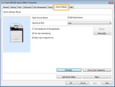 Κάντε κλικ στην καρτέλα [Device Settings] (Ρυθμίσεις συσκευής) και καθορίστε τις απαιτούμενες ρυθμίσεις.