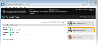 Εκκινήστε το Remote UI (Απομακρυσμένο περιβάλλον εργασίας) και συνδεθείτε σε λειτουργία υπεύθυνου συστήματος.