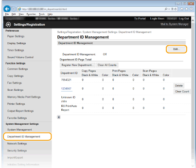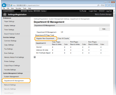 Πατήστε [Department ID Management]