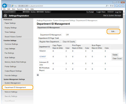 Επιλέξτε [Department ID Management] και καταχωρήστε ή επεξεργαστείτε τους κωδικούς τμημάτων.