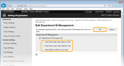 Επιλέξτε το πλαίσιο ελέγχου [Department ID Management] και κάντε κλικ στο [OK].