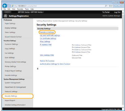 Εκκινήστε το Remote UI (Απομακρυσμένο περιβάλλον εργασίας) και συνδεθείτε σε λειτουργία υπεύθυνου συστήματος.