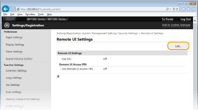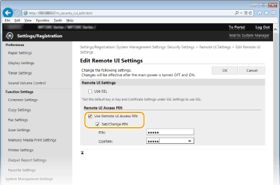 Επιλέξτε το πλαίσιο ελέγχου [Use Remote UI Access PIN] και καθορίστε τον κωδικό ΡΙΝ.