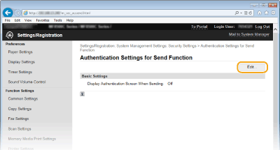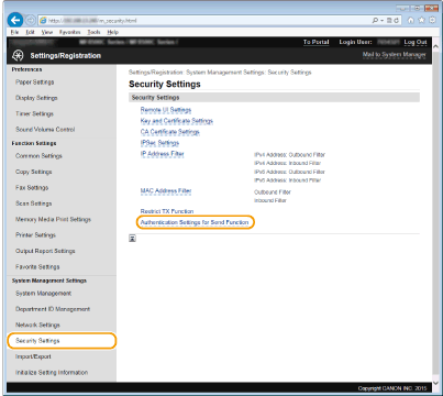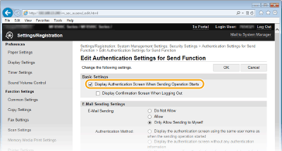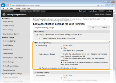 [Authentication Settings for Send Function].