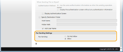 Όταν έχετε επιλέξει [Allow] για τη ρύθμιση [File Sending]