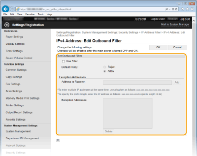 [IPv4 Address: Outbound Filter]