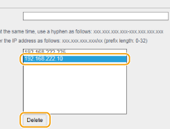 Διαγραφή διεύθυνσης IP από τις εξαιρέσεις Επιλέξτε μία διεύθυνση IP και κάντε κλικ στο [Delete].