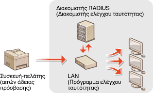 Το IEEE 802.1X είναι πρότυπο και μηχανισμός που αποτρέπει τη μη εξουσιοδοτημένη πρόσβαση στο δίκτυο με τη συλλογική διαχείριση των πληροφοριών ελέγχου ταυτότητας χρήστη. Εάν μια συσκευή προσπαθήσει να συνδεθεί στο δίκτυο 802.1X, η συσκευή πρέπει να περάσει από έλεγχο ταυτότητας χρήστη προκειμένου να αποδειχθεί ότι η σύνδεση πραγματοποιήθηκε από εξουσιοδοτημένο χρήστη. Οι πληροφορίες ελέγχου ταυτότητας αποστέλλονται σε και ελέγχονται από ένα διακομιστή RADIUS, ο οποίος επιτρέπει ή απορρίπτει την επικοινωνία με το δίκτυο ανάλογα με τα αποτελέσματα του ελέγχου ταυτότητας. Εάν ο έλεγχος ταυτότητας αποτύχει, ένας διακόπτης LAN (ή σημείο πρόσβασης) αποτρέπει την πρόσβαση από συσκευές εκτός του δικτύου. Το μηχάνημα μπορεί να συνδεθεί σε ένα δίκτυο 802.1X ως συσκευή-πελάτης.