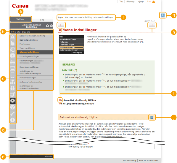 Klik for at få vist alle emner i e-Manual.