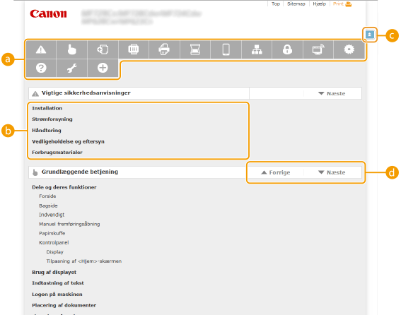 Skærmbilledlayout for e-Manual