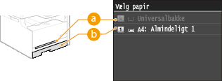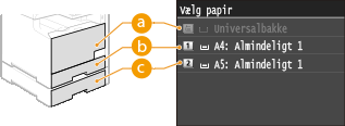 Du skal først angive format og type af det papir, der er lagt i papirkilden.