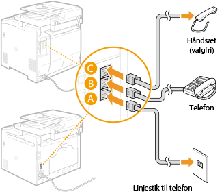 Sæt telefonkablet i linjestikket til telefon på maskinen (
