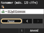 Tryk på <Pause> for at indsætte en pause efter faxnummeret, hvis det er nødvendigt.