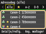Du kan få anvisninger i, hvordan du bruger adressebogen, under Angivelse fra adressebogen (fax).